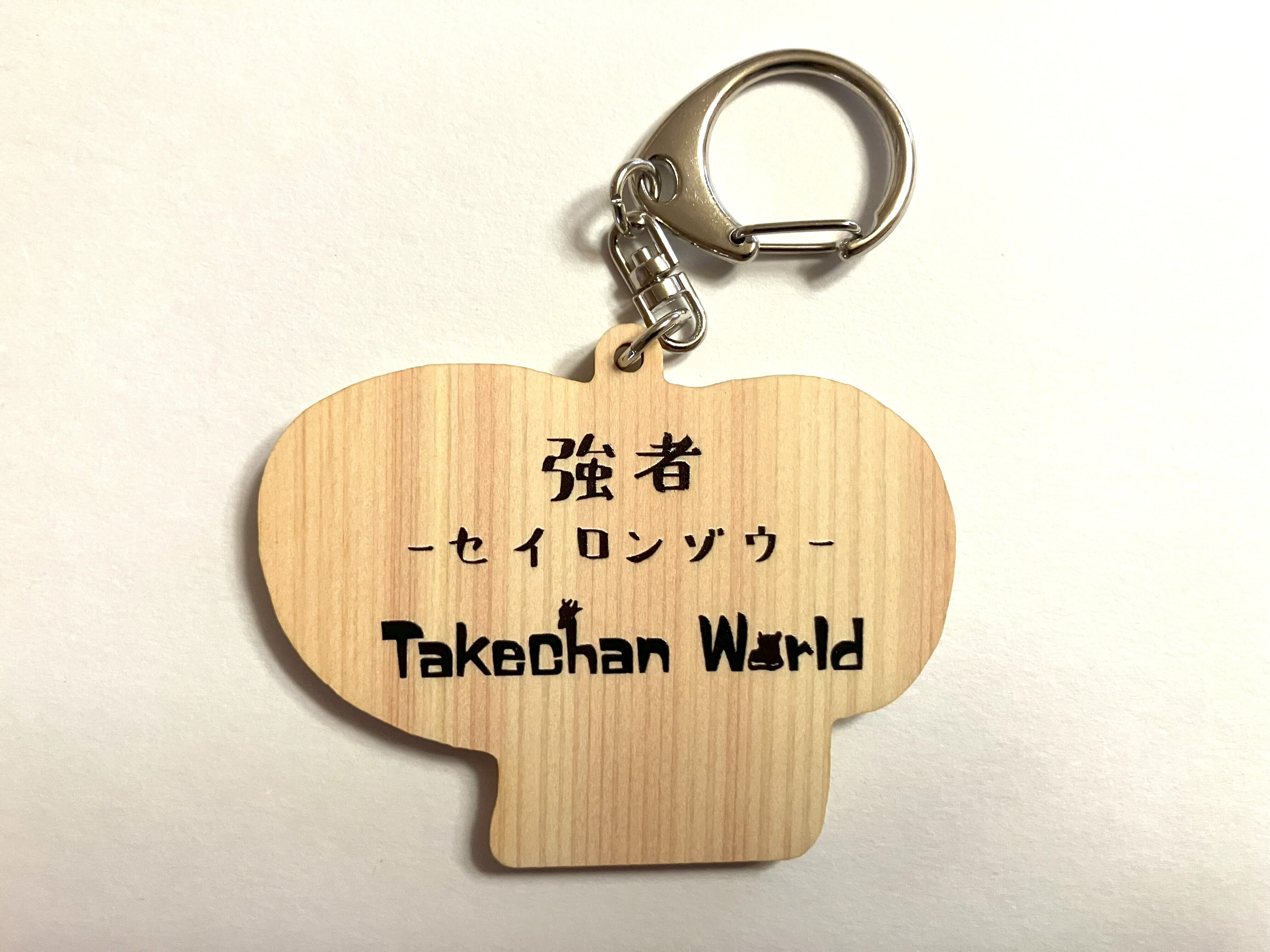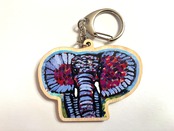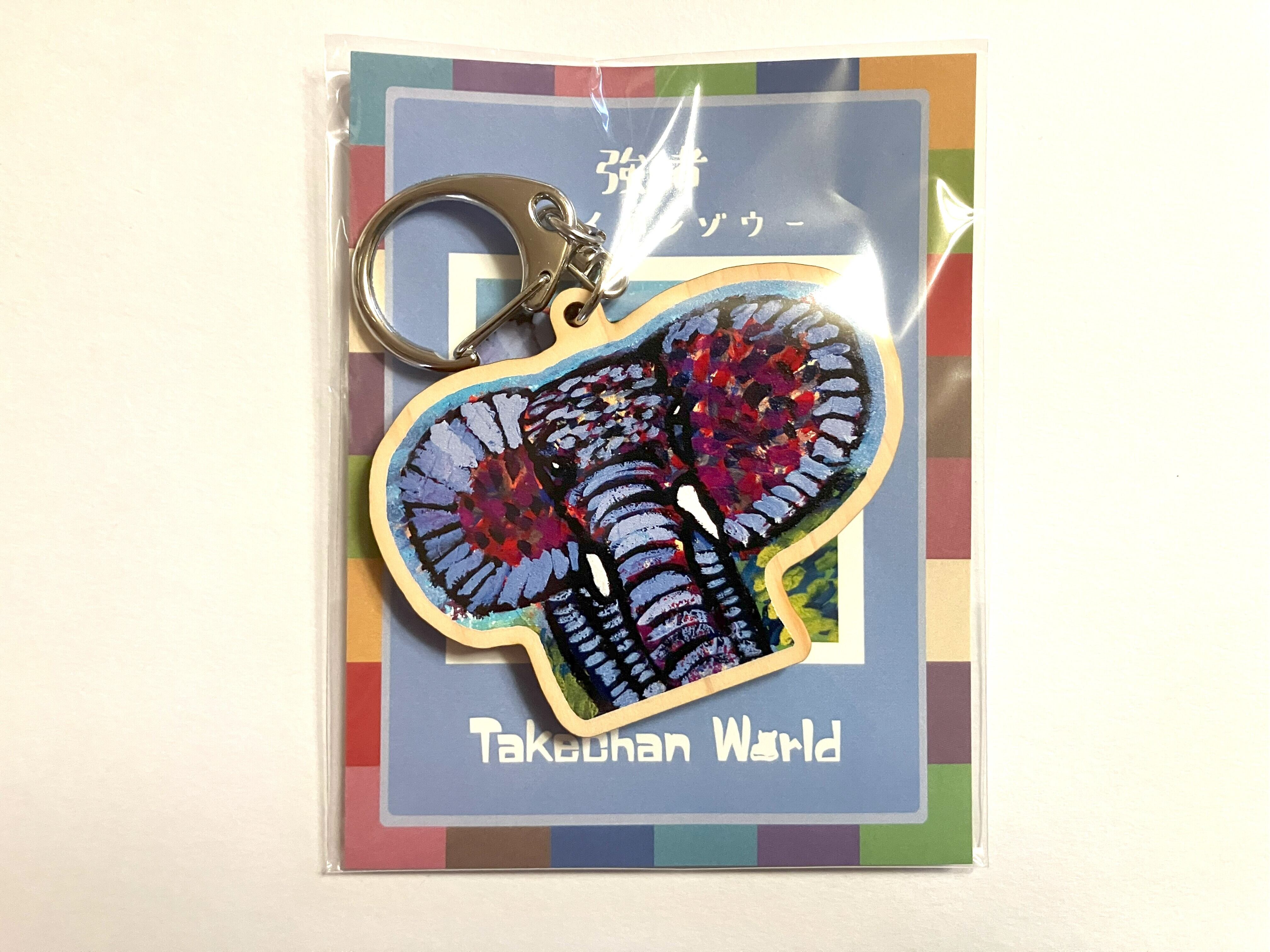 エサやりをしたり、すぐそばで見ることのできる動物園のゾウですが、体が大きく迫力があるため近づくことができません。まさに強者です。(木製キーホルダー/70mm×70mm)