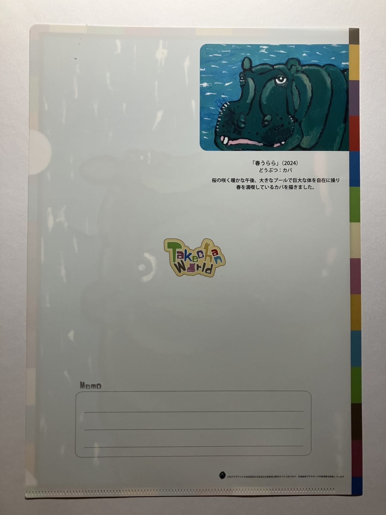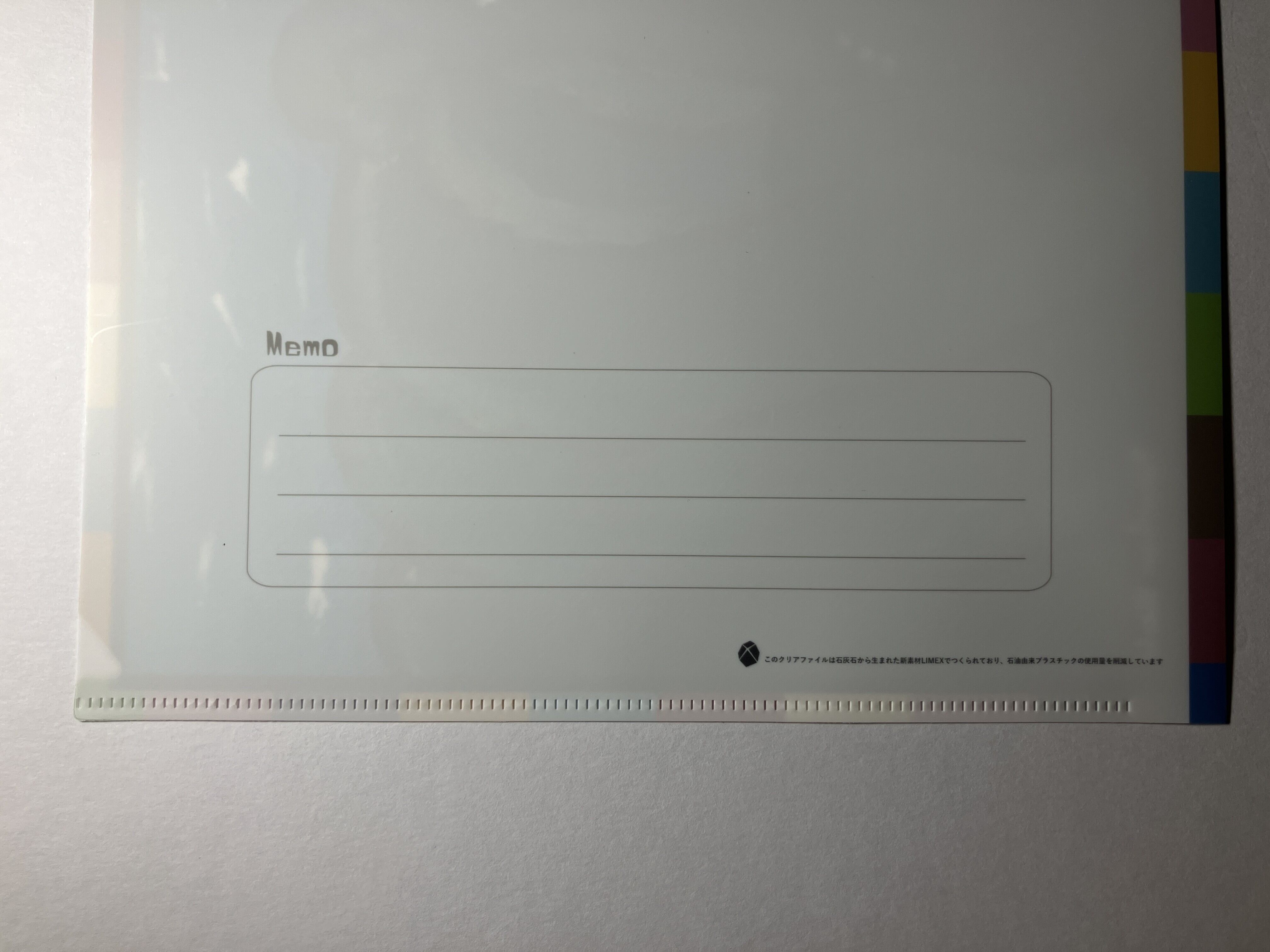 裏面にメモ枠があり、使い勝手の良いクリアファイルです。学校、自宅、オフィスで書類整理にお使いください。