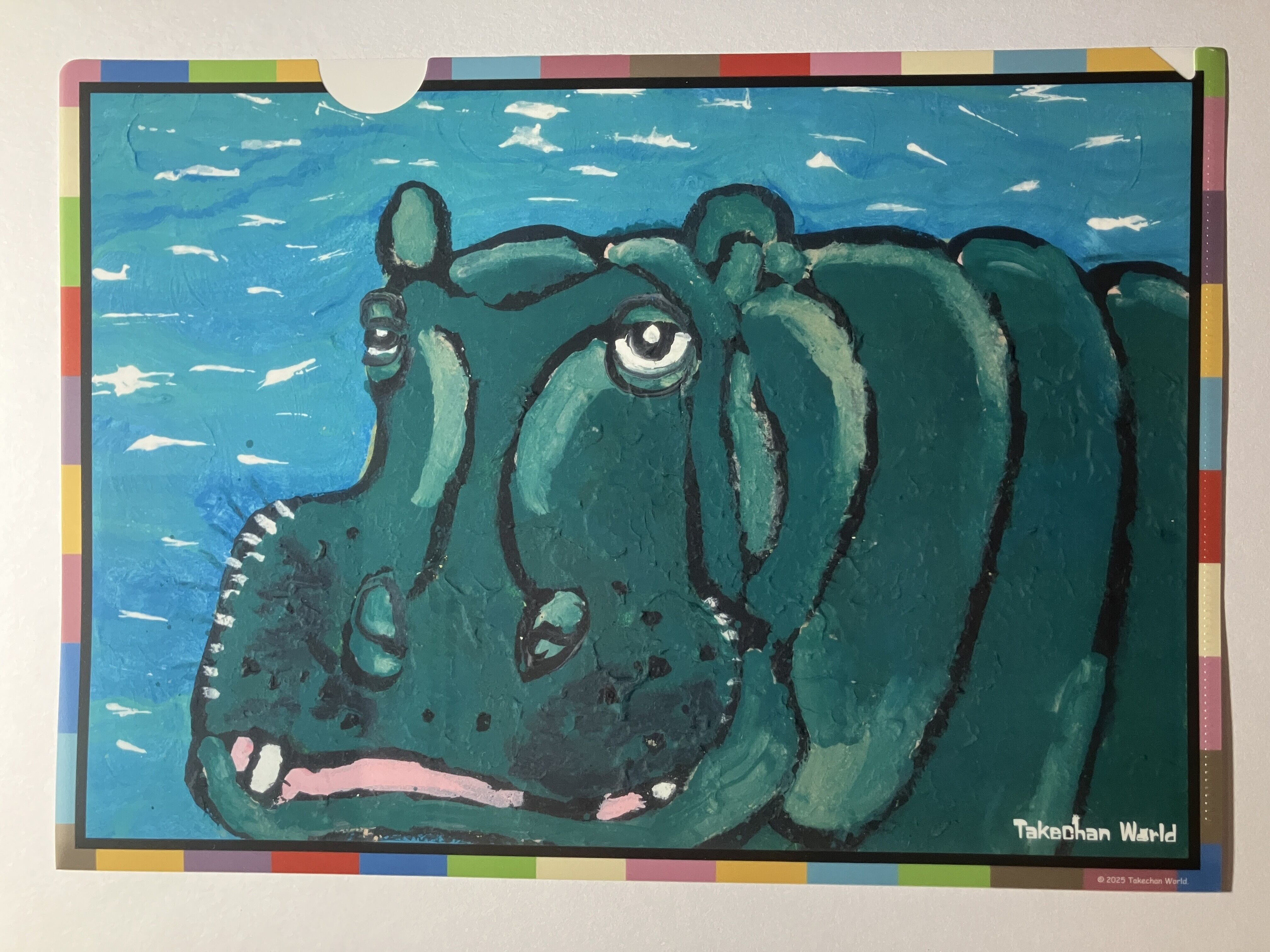 桜の咲く暖かな午後、大きなプールで巨大な体を自在に操り、春を満喫しているカバを描きました。