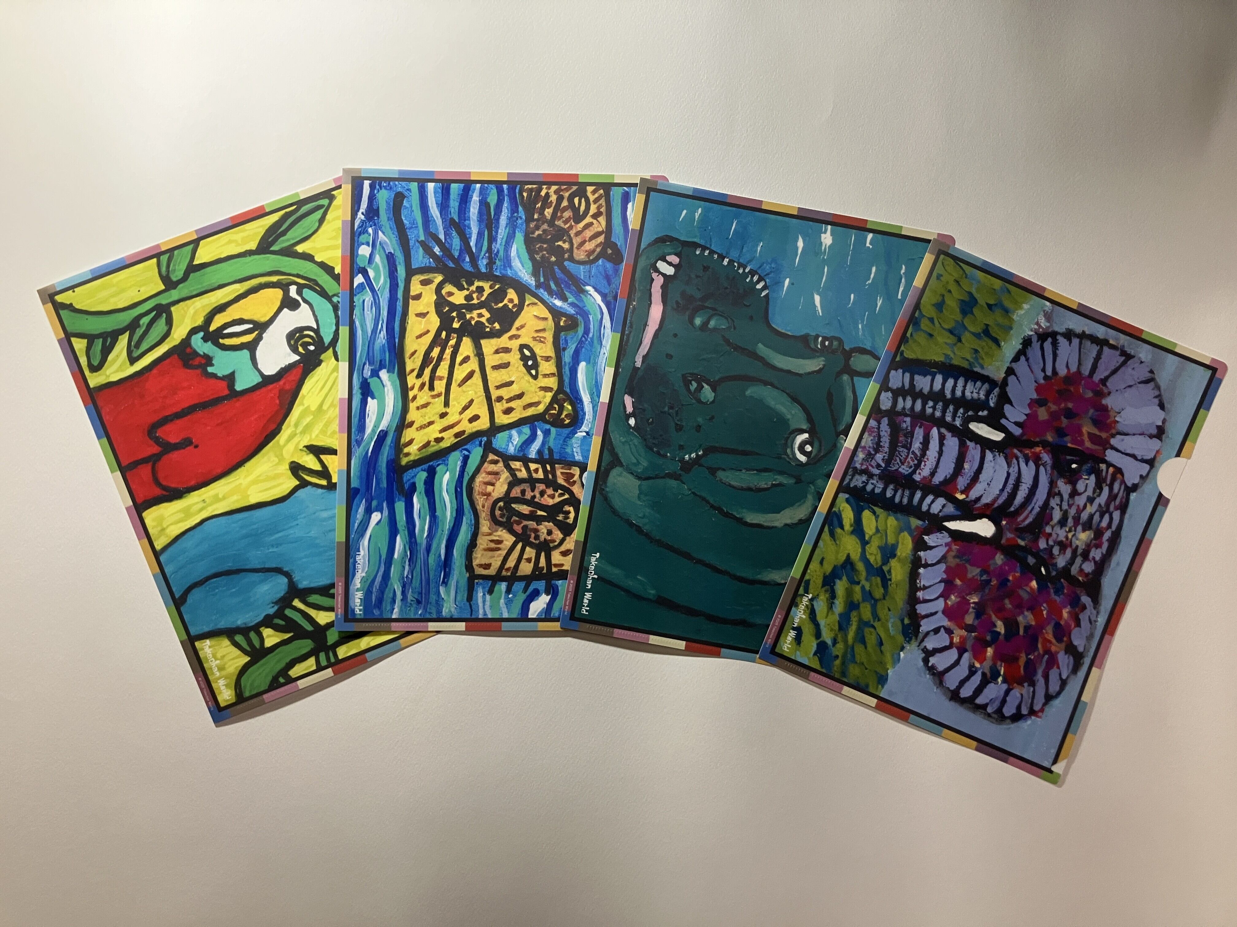 強者、川あそび、春うらら、おしゃべりインコのクリアファイルセットです。