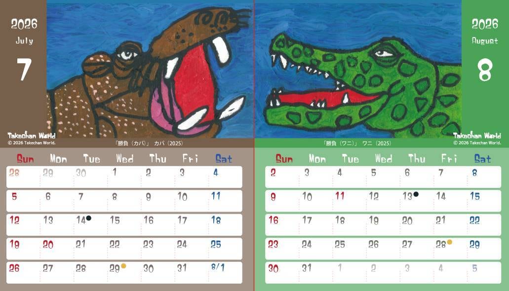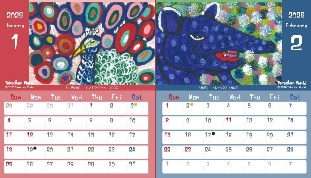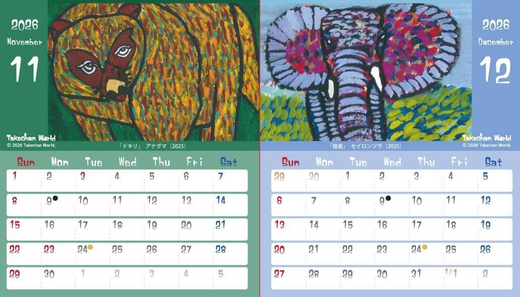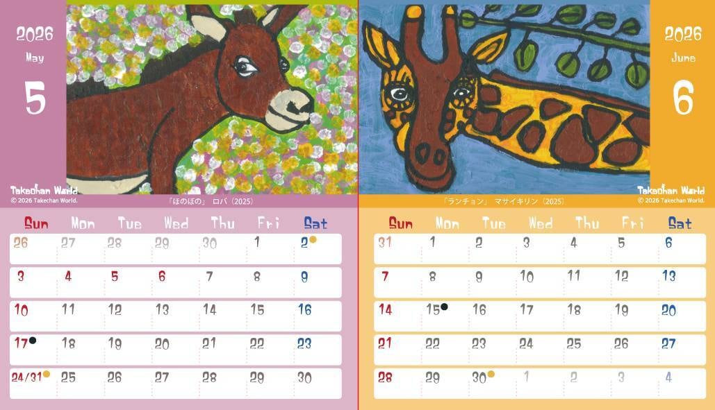 たけちゃんの描くキュートな動物たちがカレンダーになりました。